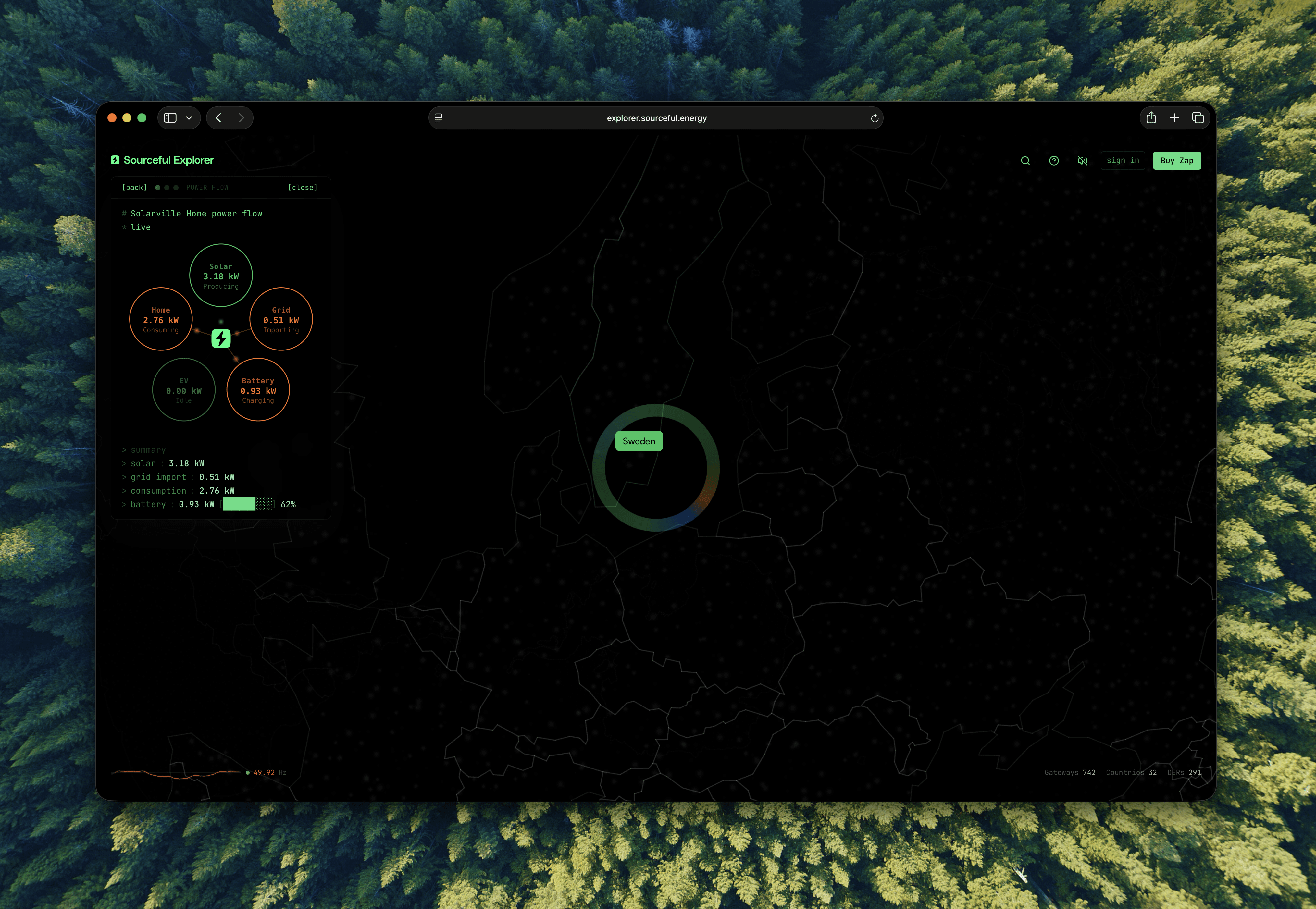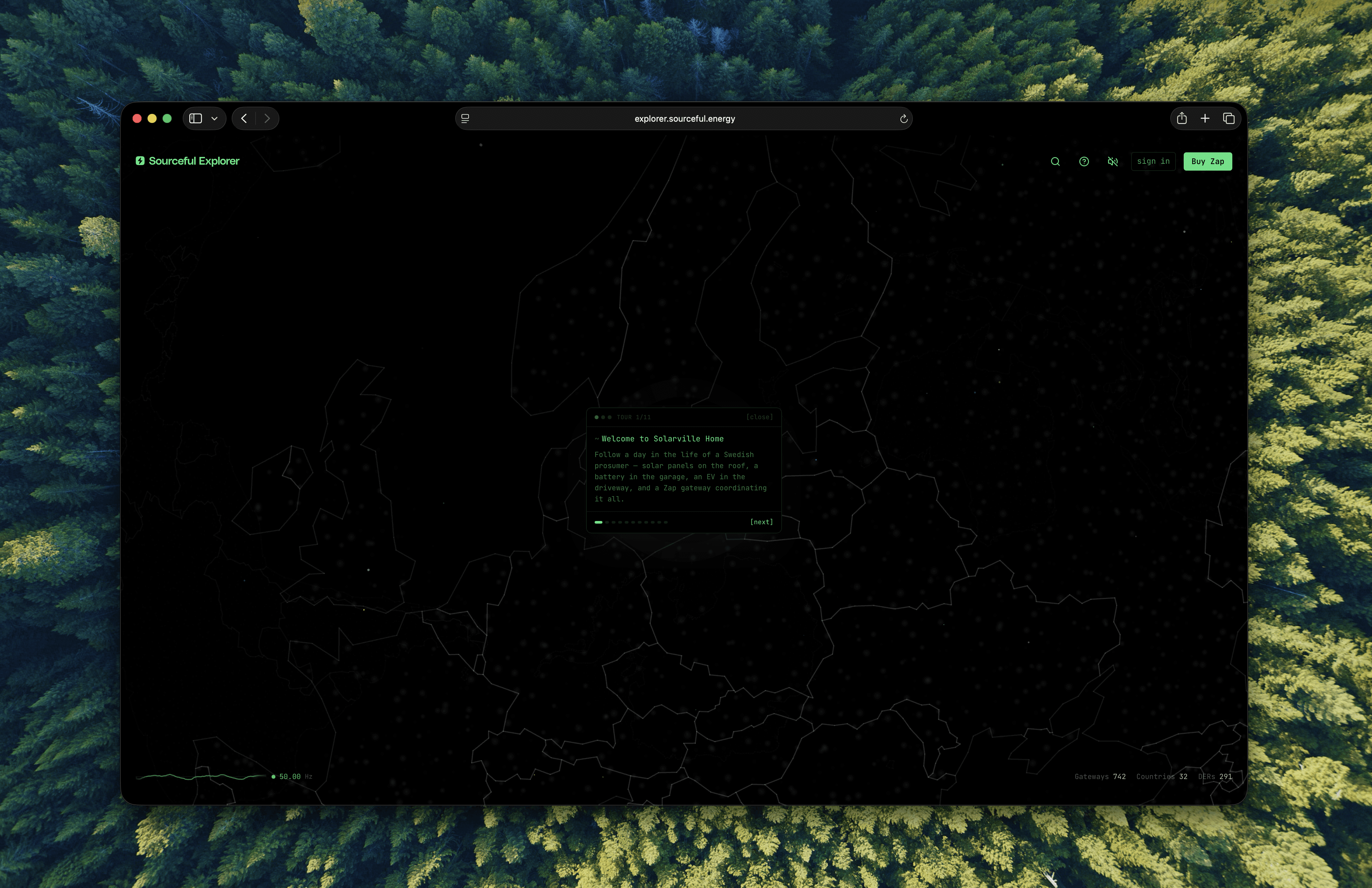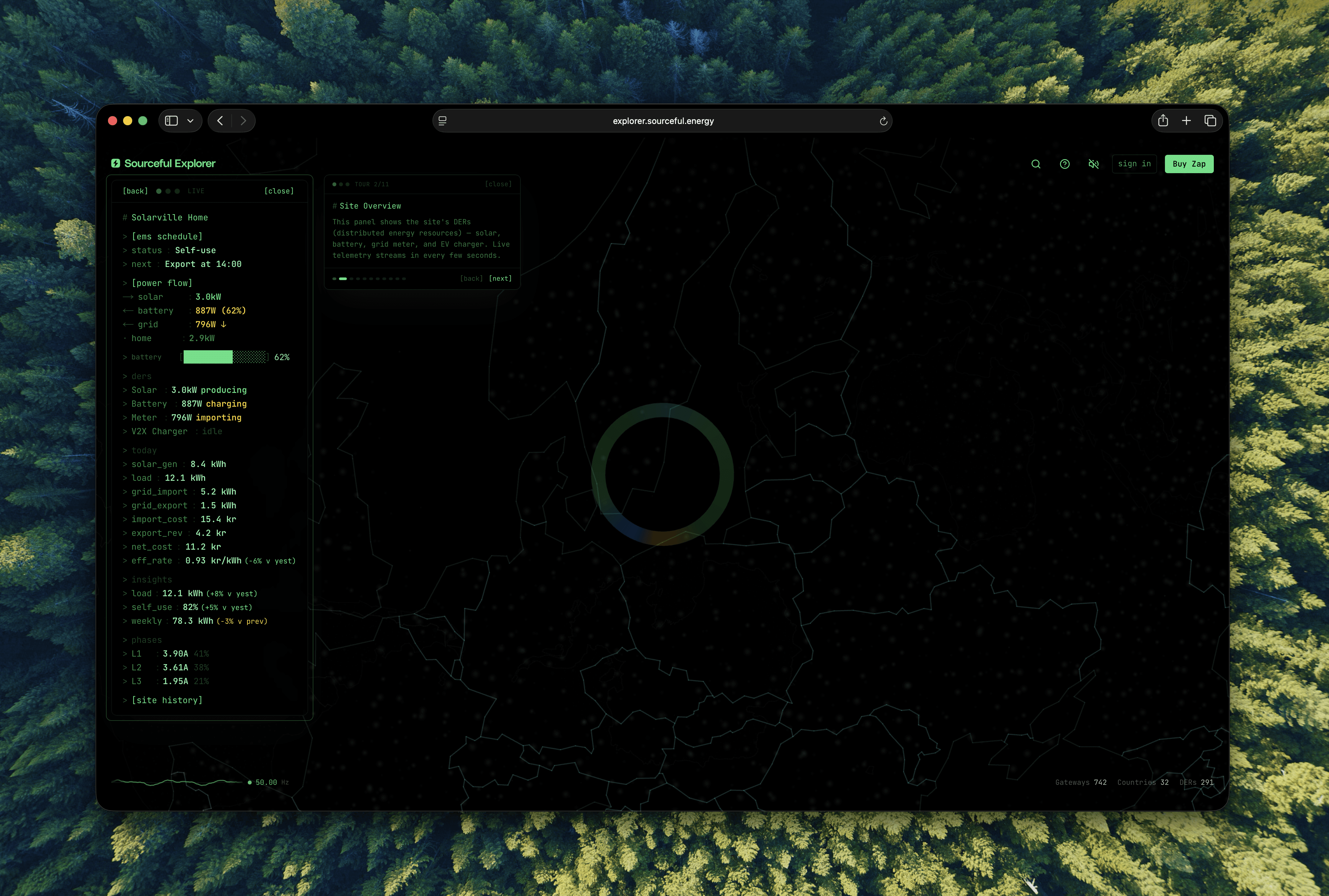 The Explorer is Sourceful Energy's window into the decentralized energy network - a web app that makes the invisible visible. While the mobile app focuses on onboarding and managing individual energy assets, the Explorer pulls back to reveal the bigger picture: a real-time, interactive view of every node contributing to the network on Solana.
